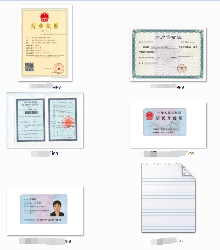 格式:支付宝账号|登陆密码|支付密码|支付密保|企业名称|企业身份信息|邮箱密码 附带5张照片